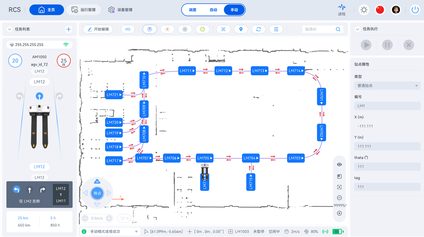 无人叉车的运行路径直接影响搬运效率和安全性。通过710公海寰宇智能调度系统对路线进行动态优化,够实现自动寻路和路径优化,这为提高作业效率提供了有力支持,引入“红绿灯”通道策略,高优先级任务自动锁定路段,避免会车,可显著提高工作节拍。在实际使用前,企业可借助710公海寰宇数字孪生系统对作业流程进行模拟和优化,确定最佳的路径和作业策略。